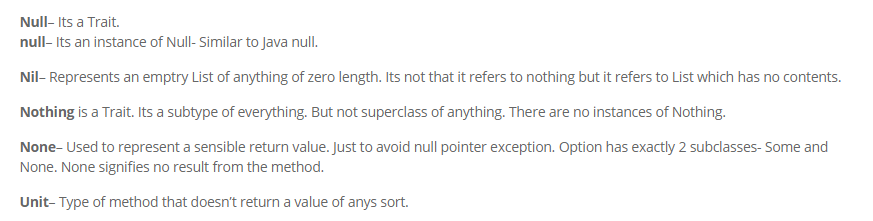 - Since Nothing is a subtype of everything, Nil can be used as an empty List of Strings, an empty List of Ints, an empty List of Any. So Nothing is useful for defining base cases for collections or other classes.